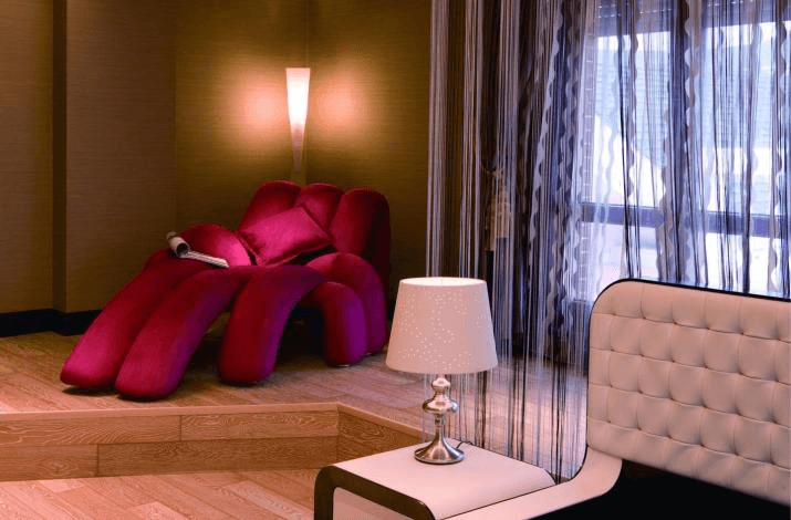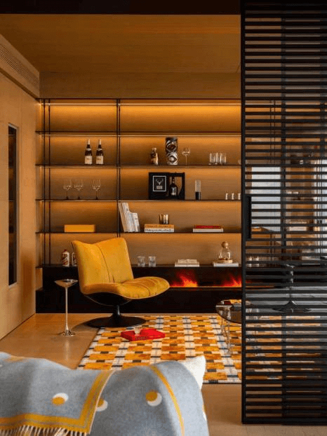 可借鉴经典的“蒙德里安”美学,以“红黄蓝”三原色为主题色,搭配线条感强烈的几何造型家具,将不同的色彩与形状有机地结合在一起,创造出充满活力的装饰美学及视觉交响~