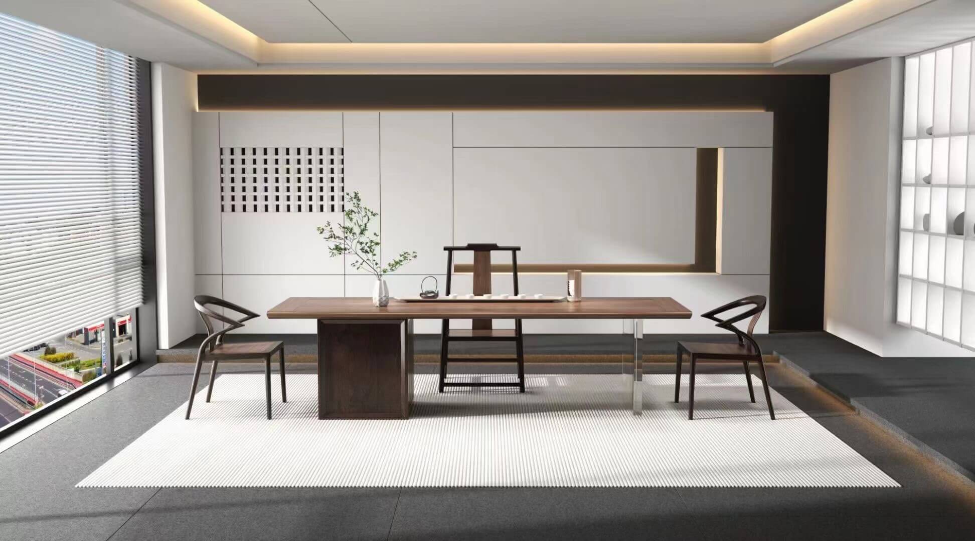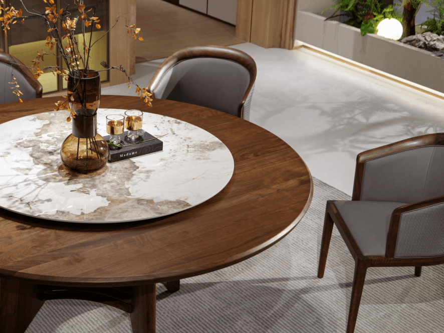 此外,北美黑胡桃木、缅甸柚木、乌金木等中高端木材,因其卓越的木性与独特的纹理,常被精工制成整块实木大板,做茶桌、书桌、会议桌等,颜值与品质兼具。