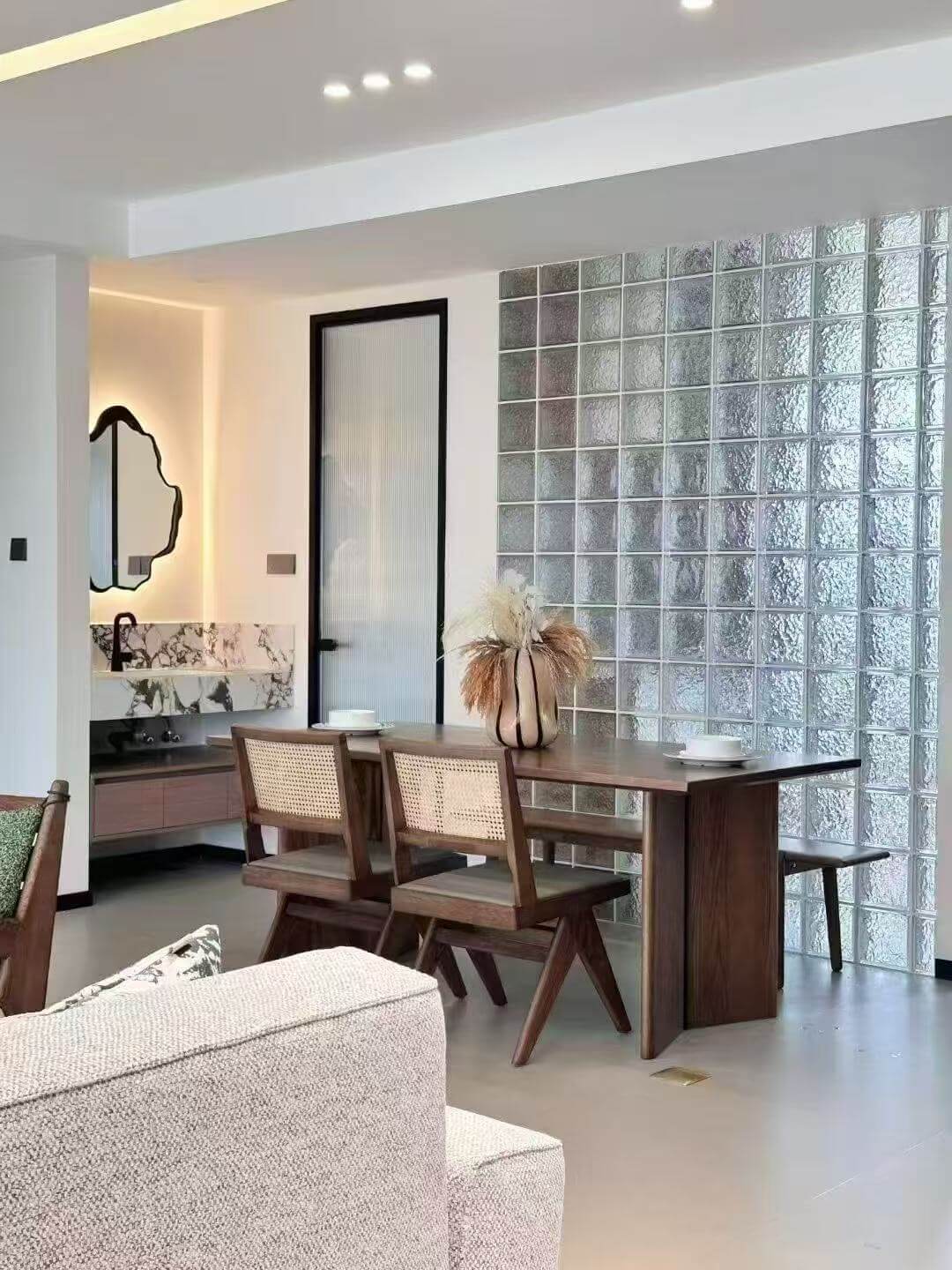 木适万物,通过材质混搭,能够创造出更具个性与层次感的家居空间。这之中,藤编、棉麻等天然材质和实木家具是最常见的搭配组合,轻松营造出度假般的治愈氛围,为家注入更多松弛感。