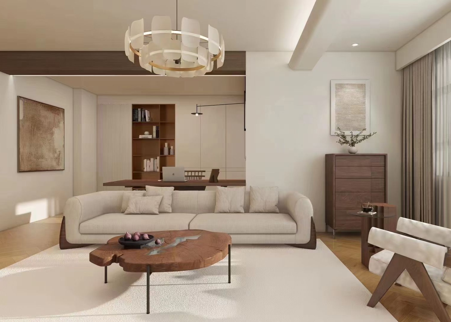 例如:通过将柜体、书架等嵌入非承重墙体,向内扩展空间,让庞大的储物空间悄然“隐身”,创造出平整利落的立面线条,增强空间的整体性和流畅感。