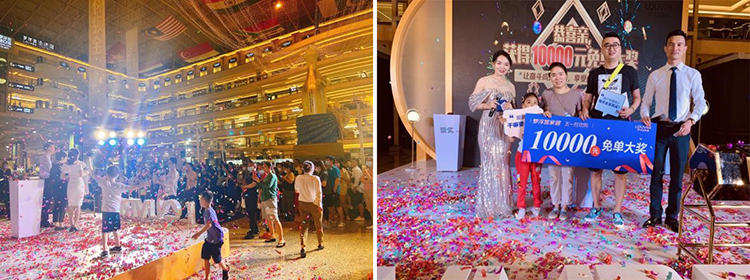 台上中奖顾客喜不自胜,台下欢呼声此起彼伏,氛围热烈