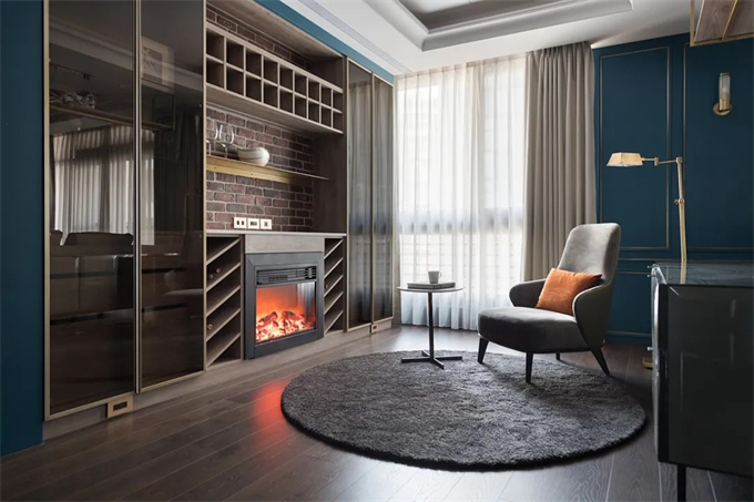 而假火壁炉则适用于普遍户型,种类包含电壁炉、雾化壁炉和装饰壁炉等,功能各有不同,有取暖、加湿、装饰等不同作用,比起真火壁炉,更加安全卫生,价格也更加亲民。电壁炉适合小面积区域取暖,功率通常在0.75kw-1.5kw,安装时要提前预留电源。雾化壁炉可加湿可装饰,但不能作为取暖使用,不适宜安装在湿度大或需要保持干燥的区域,安装时下沉式凹槽底部需留进风口,保证雾化壁炉空气流通。装饰壁炉则纯粹作为装饰而存在,可设计在客厅、餐厅与卧室等区域。