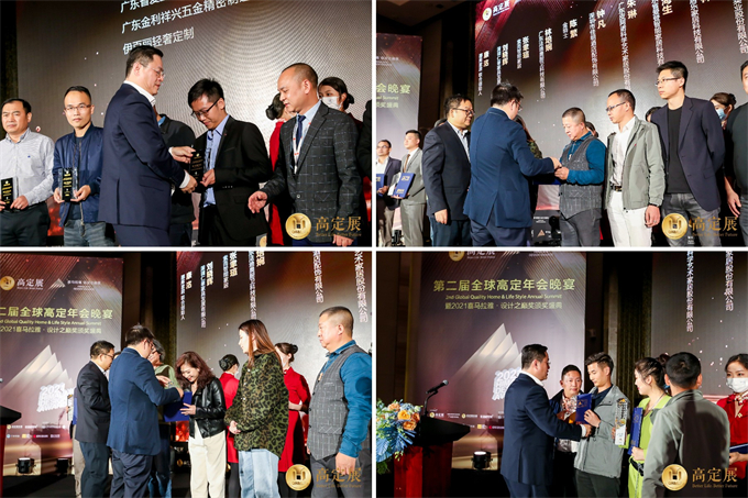 随后,陈旺辉、黎邦其、张传喜、华谦生等领导嘉宾启动《中国高定品牌&供应链白皮书》,众嘉宾共同举杯,共襄盛举。晚宴现场还举行了2021高定俱乐部新进成员授牌仪式。同时,高定展联合优居研究院颁发全球高定品牌.高定G20奖杯,为进一步打造高定生态圈强势赋能。