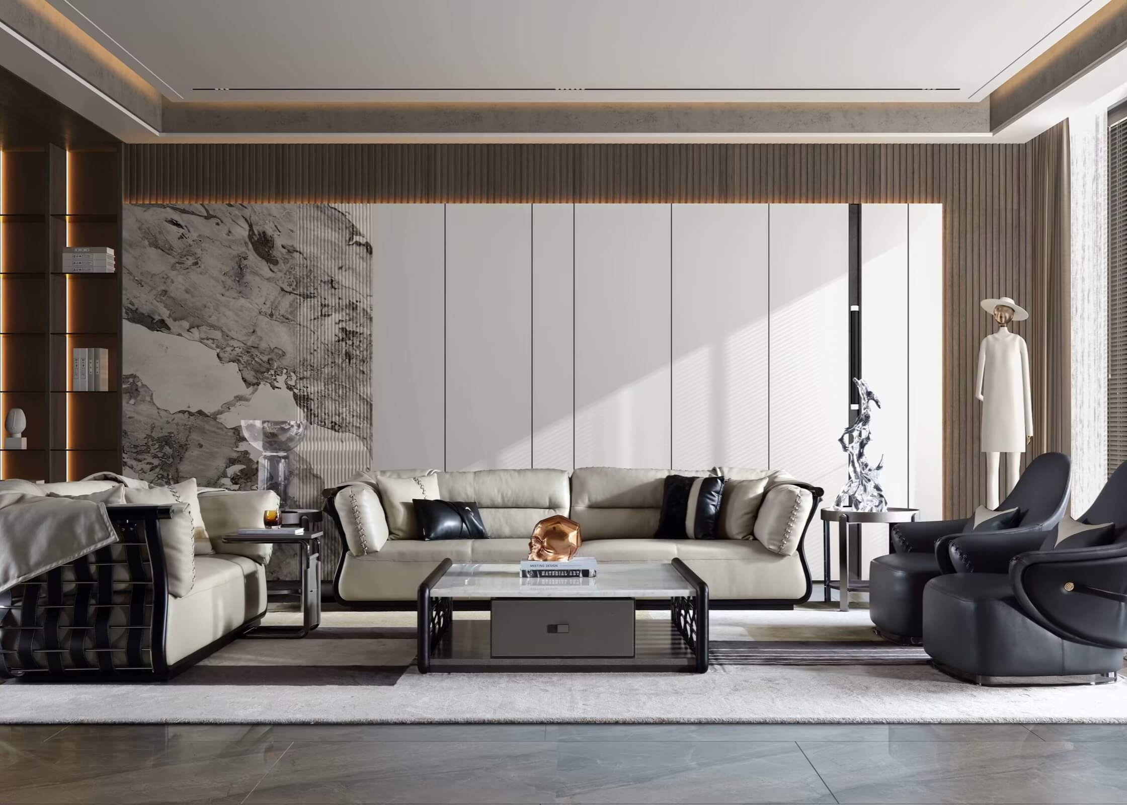二者常以一深一浅的形式组合呈现,既不会过于厚重,又能彰显层次美学,尤其适合打造现代轻奢、意式极简风格类的家居,让客厅瞬间拥有精致考究的情调。