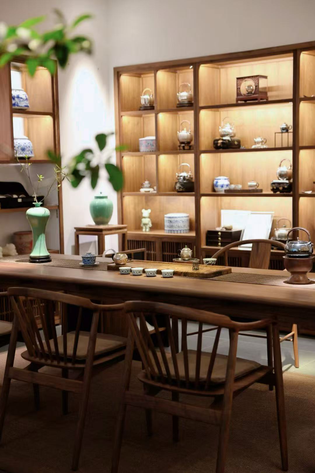 软饰陈设不在多,但求精,一套清润的茶器、一个古拙的陶罐,几枝随手插置的枯枝、新绿等,都是点缀空间的绝佳艺术品,瞬间将人引入风雅之境。