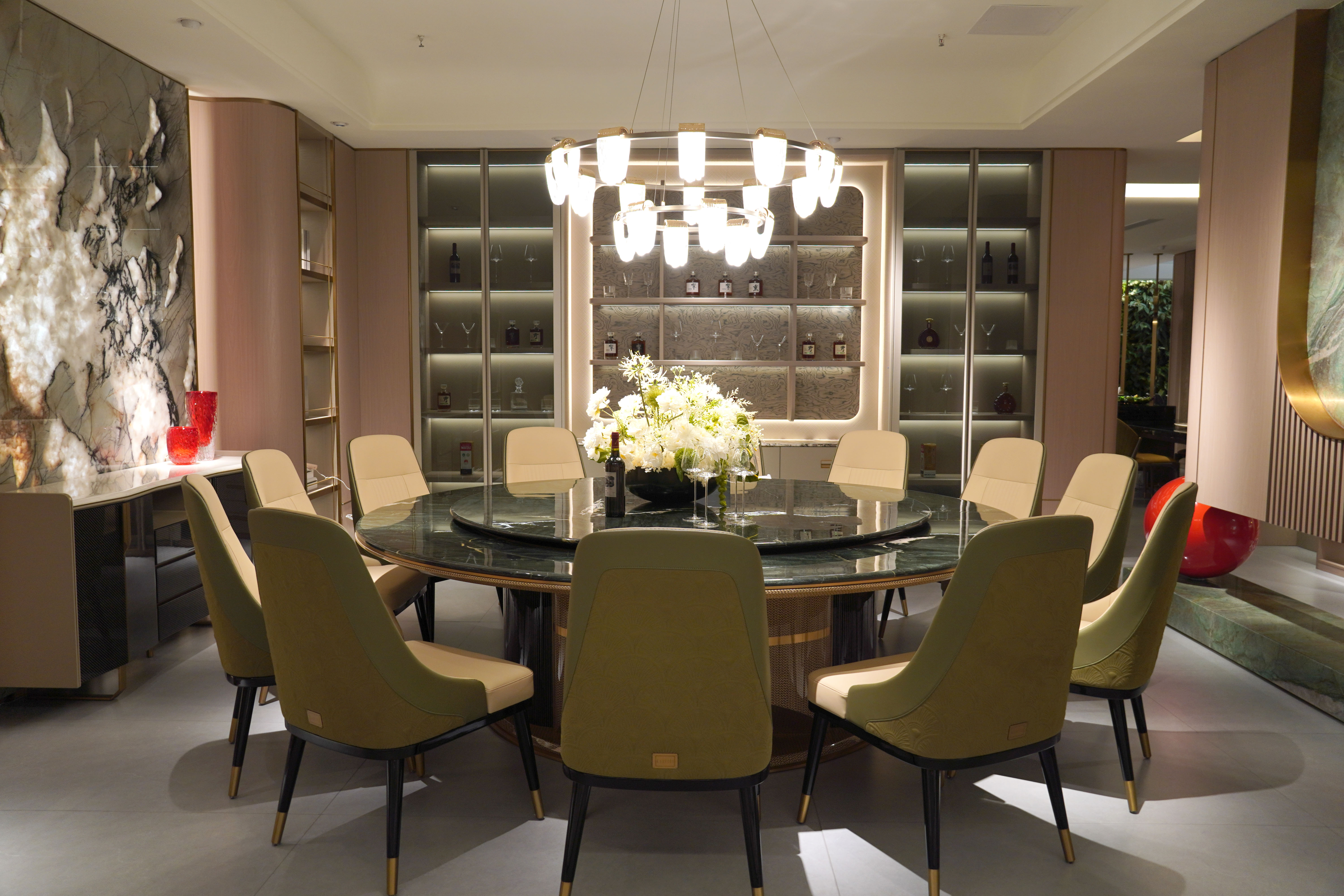 佛山罗浮宫家居全案定制优势: 从餐桌肌理、餐椅比例到灯具氛围、软装色调,风格一体化统筹,细节精准匹配,还原整体高级感。